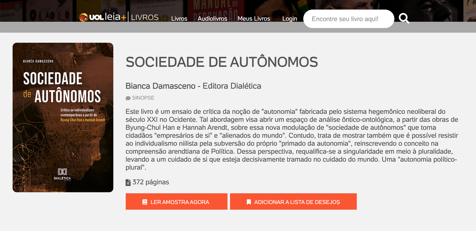 Livro: Sociedade de autônomos: crítica ao individualismo contemporâneo a partir de Byung-Chul Han e Hannah Arendt, de Bianca Damasceno
